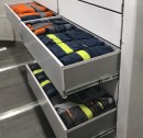 Стеллажи защищают одежду от пыли и внешних загрязнений, подходят для раздевалок, складов, производственных и служебных помещений. В зависимости от задач эксплуатации система может быть оснащена дверями, выдвижными ящиками, сетчатыми полками и штангами для одежды. Также возможны варианты исполнения в виде ячеек для индивидуального или группового хранения.